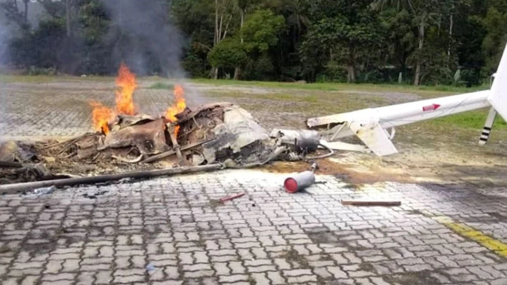 目击者称,直升机当时盘旋距离地面约3尺时发生擦撞,随即失控翻覆并引发火灾,致使一名工程师不幸死亡。